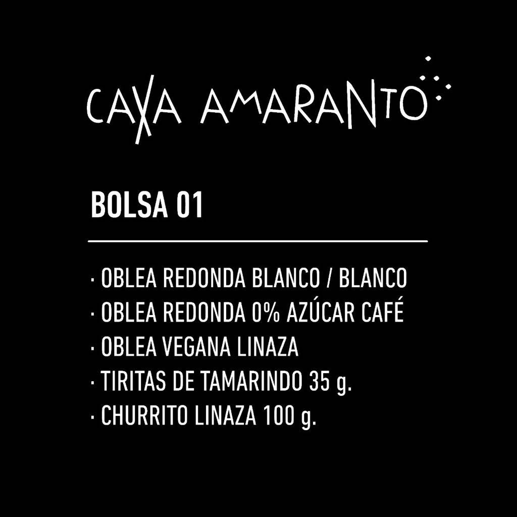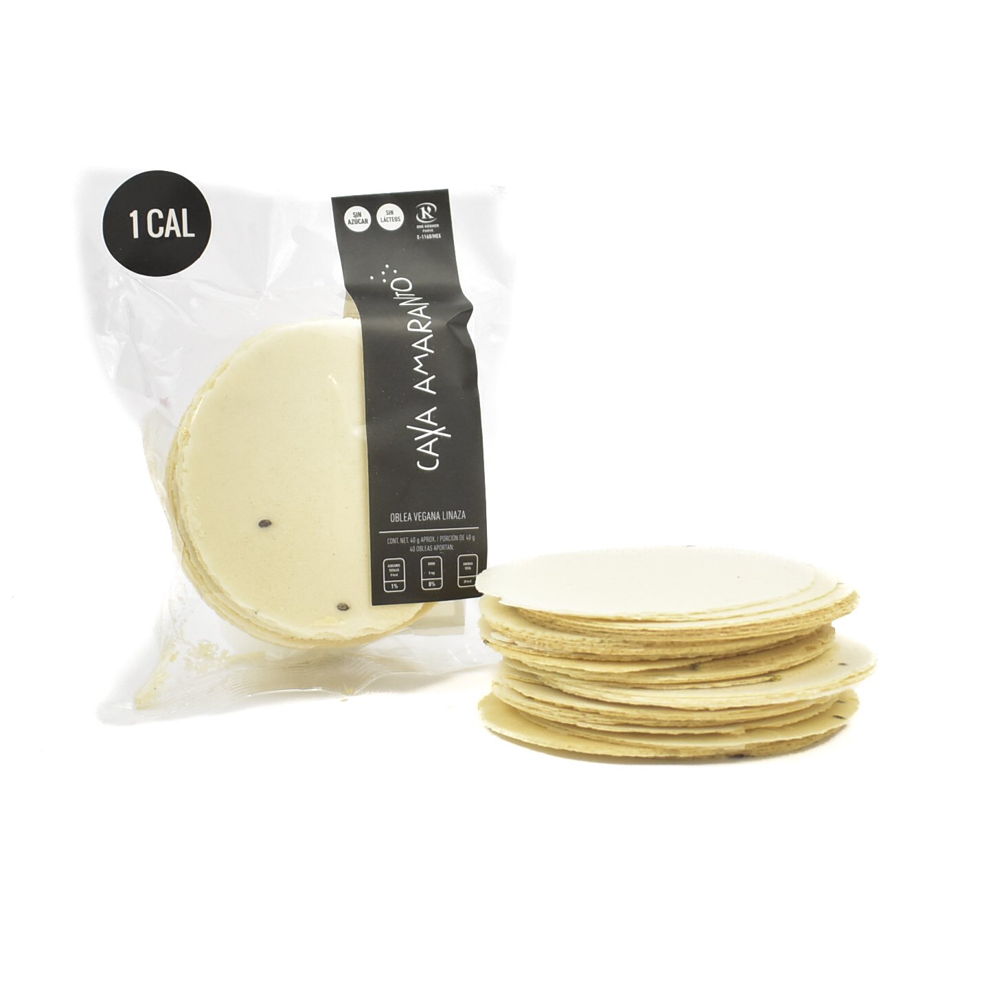1 oblea redonda blanco/ blanco 1 oblea redonda 0% azúcar café 1 oblea vegana linaza 1 tiritas de tamarindo 35 g 1 churrito de linaza 100 g