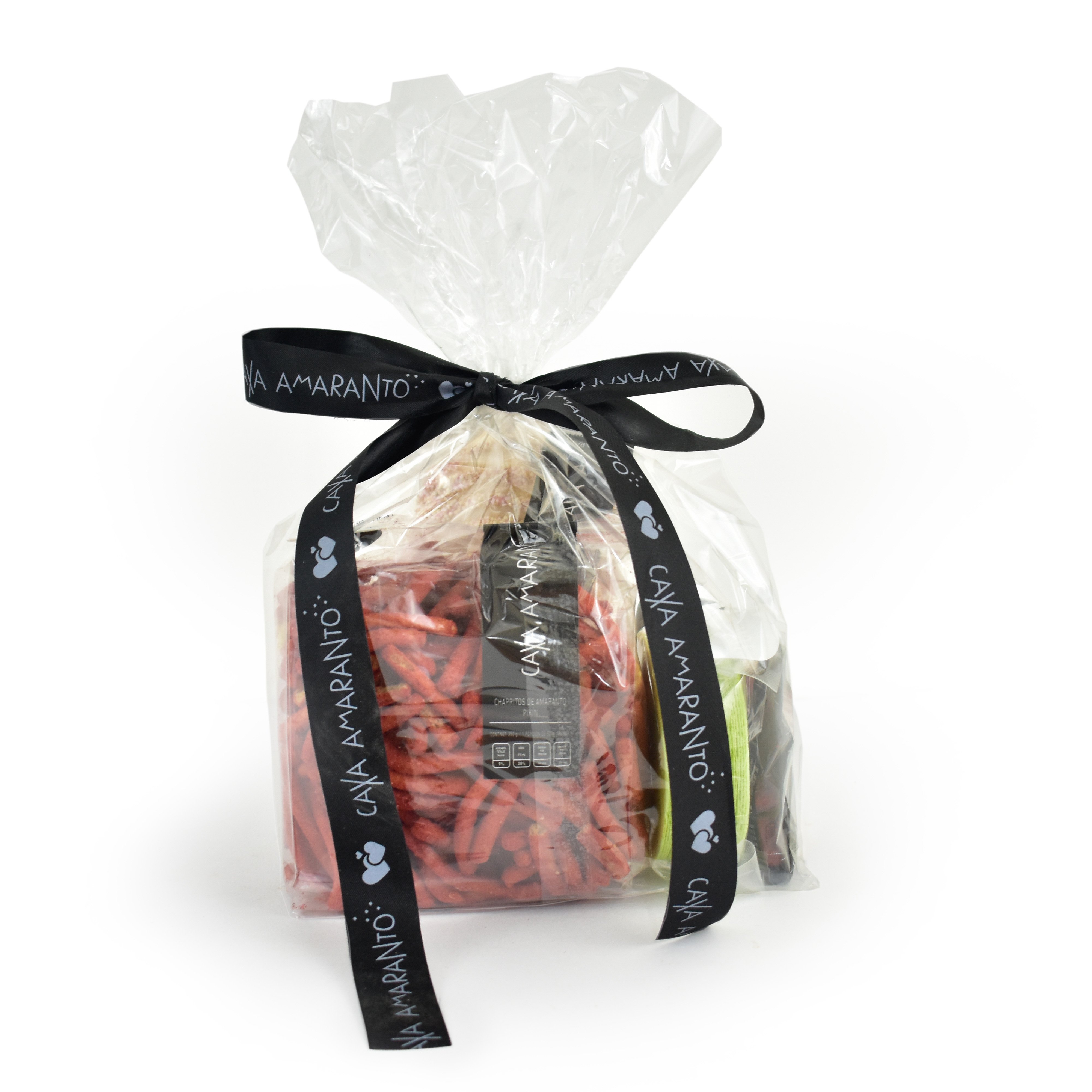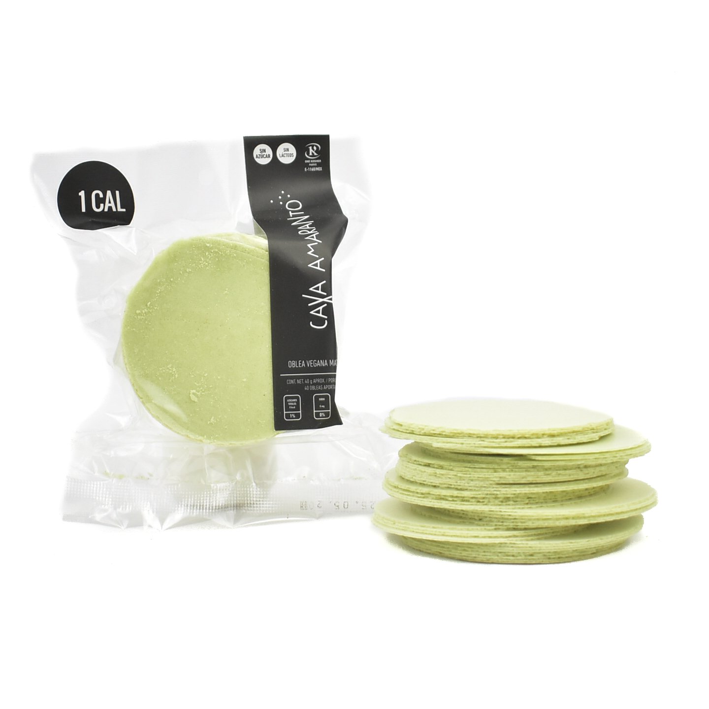 1 oblea de fresa con chocolate, 1 charro pikin 350 gr 1 cubirindo (ate mango enchilado) 35 gr 1 oblea vegana sabor matcha