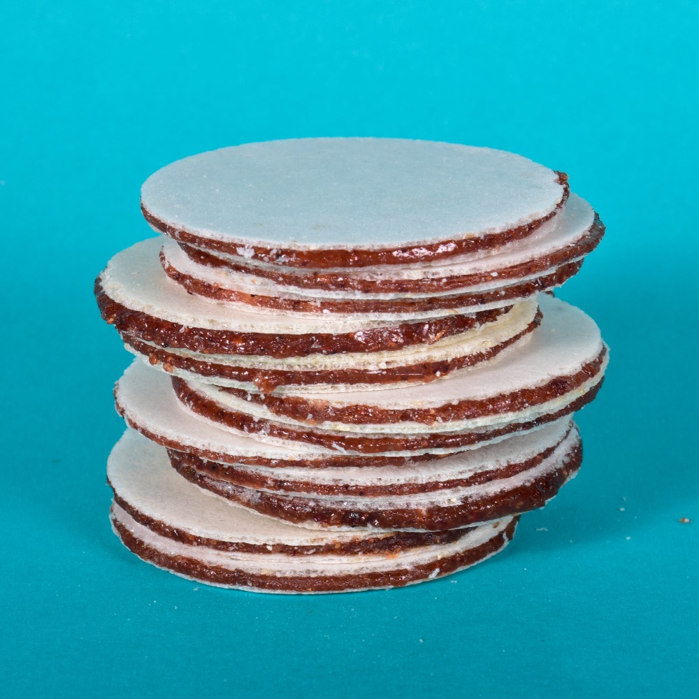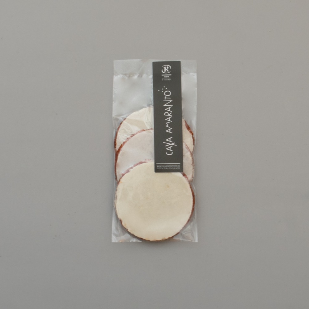 Mini oblea de amaranto elaborada con harina de amaranto orgánica, harina de linaza y rellenas de chamoy.Sin gluten, producto vegano. Cont 21g 3 piezas Producto 100% mexicano.